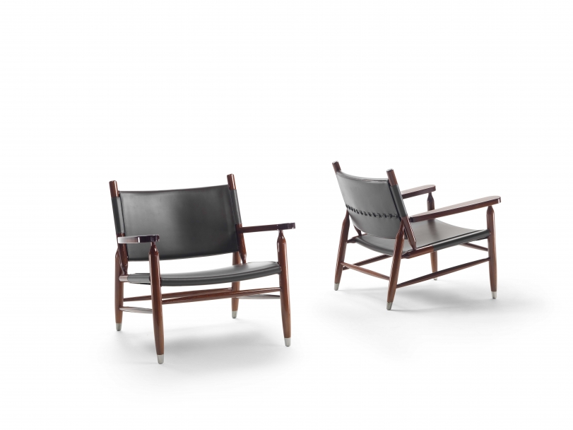 The Tessa S.H. armchair is an iconic combination of a wood structure crafted in the fine Italian cabinetmaking tradition and a quintessential, timeless material like cowhide.