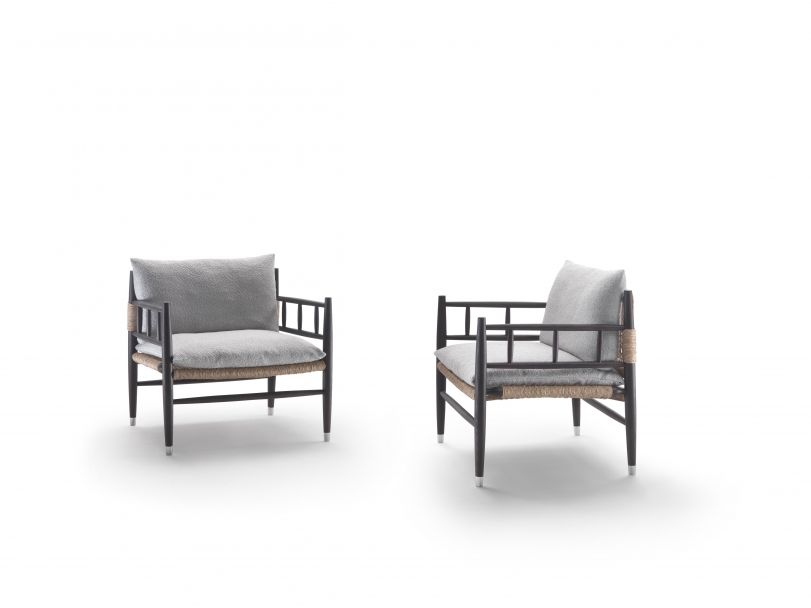 The solid wood structure – in ash and Canaletto walnut – is entirely hand-crafted, as are the woven backrest and seat made of paper rush cord. This old-fashioned but completely natural material with excellent resistance to wear is revived here as a tribute to tradition, with the satisfaction of creating something that will last a lifetime and be passed down to the next generations.