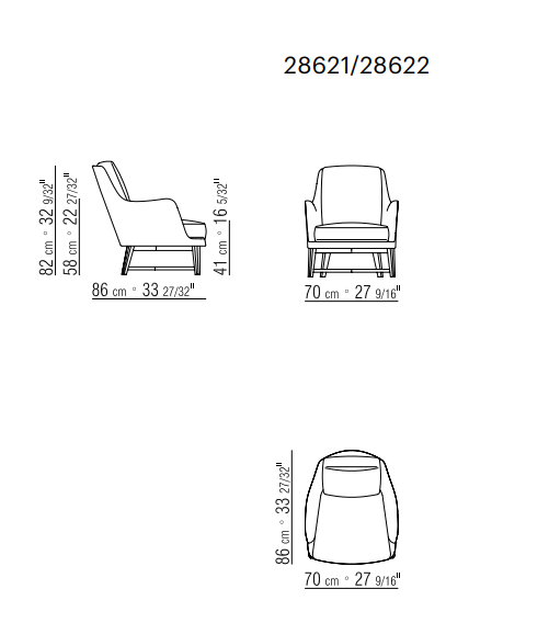 The enveloping shell of the armchair is in metal and polyurethane foam while the seat and backrest cushions are filled with goose down to ensure superior comfort.
