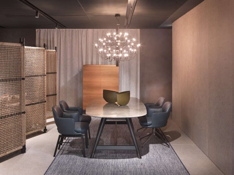 “E” as in elegance, the type of aesthetic elegance inherent to the Flexform identity, that has always adhered to an aesthetic language informed by a sense of restraint, attention to detail and to understated design.