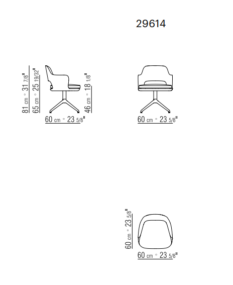 The incredible versatility of the Eliseo armchair is underscored by the option of having a wood base in a number of finishes, or a cast aluminum base, equipped with 360-degree swivel, that lends the armchair a dynamic air and facilitates interaction with the surrounding space.