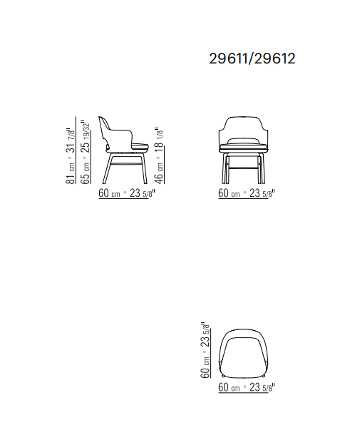 “E” as in evenly balanced proportions, which remain intact in all the versions offered ? club armchair, wingback bergère and dining chair.