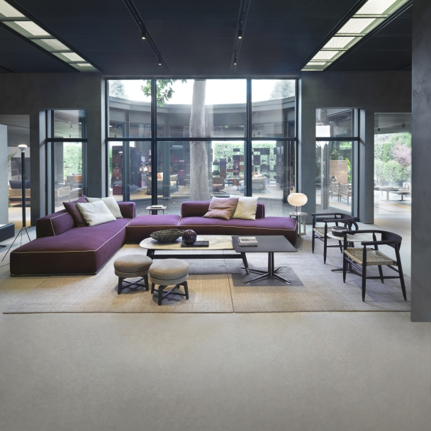 Composed of understated upholstered pieces that can be combined in different ways, the modular Perry seating system heralds a new way of designing living spaces. Creating original arrangements, using modules whose irregular shape makes it possible to break up straight-line configurations, lending them a more dynamic flow and a more casual look.