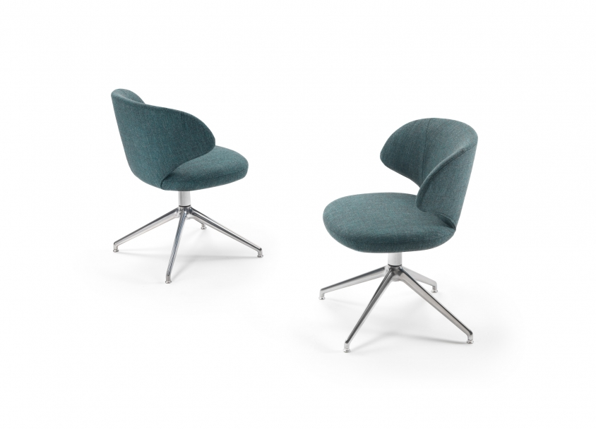 Slender and sleek, the Susanne small armchair sits on a metal stationary or swivel base.