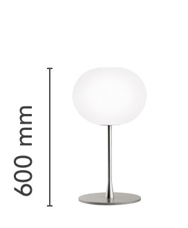 Table/desk lamp providing diffused light. Diffuser consisting of an externally acid-etched, hand blown, flashed opaline glass and a die-cast threaded ring nut with alodine plating finish. Gray or black painted high-thickness steel base and stem and die-cast aluminum diffuser support. On the cable there is the electronic dimmer which allows the regulation of light brightness.