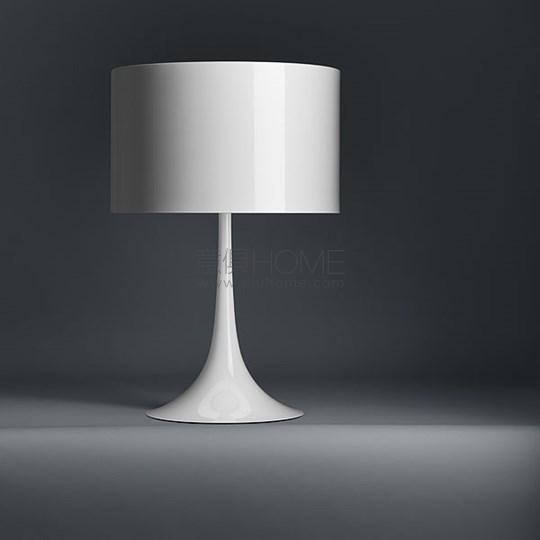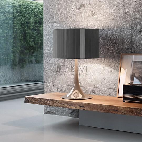 Table/desk lamp providing diffused light. Spun metal frame and diffuser, die-cast aluminum diffuser support arms and lampholder support, painted in the colors indicated below. White, injection-molded polycarbonate diffuser supports. Sandblasted pressed glass upper diffuser screen. On the cable there is the electronic dimmer which allows the regulation of light brightness.