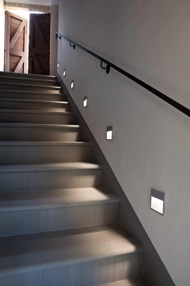 Family of devices for recessed wall mounting with asymmetric light designed to guarantee a high performance in every situation. The new versions have been equipped with latest generation LED lamps. A new recessing device is available for perfect surface-mounting.