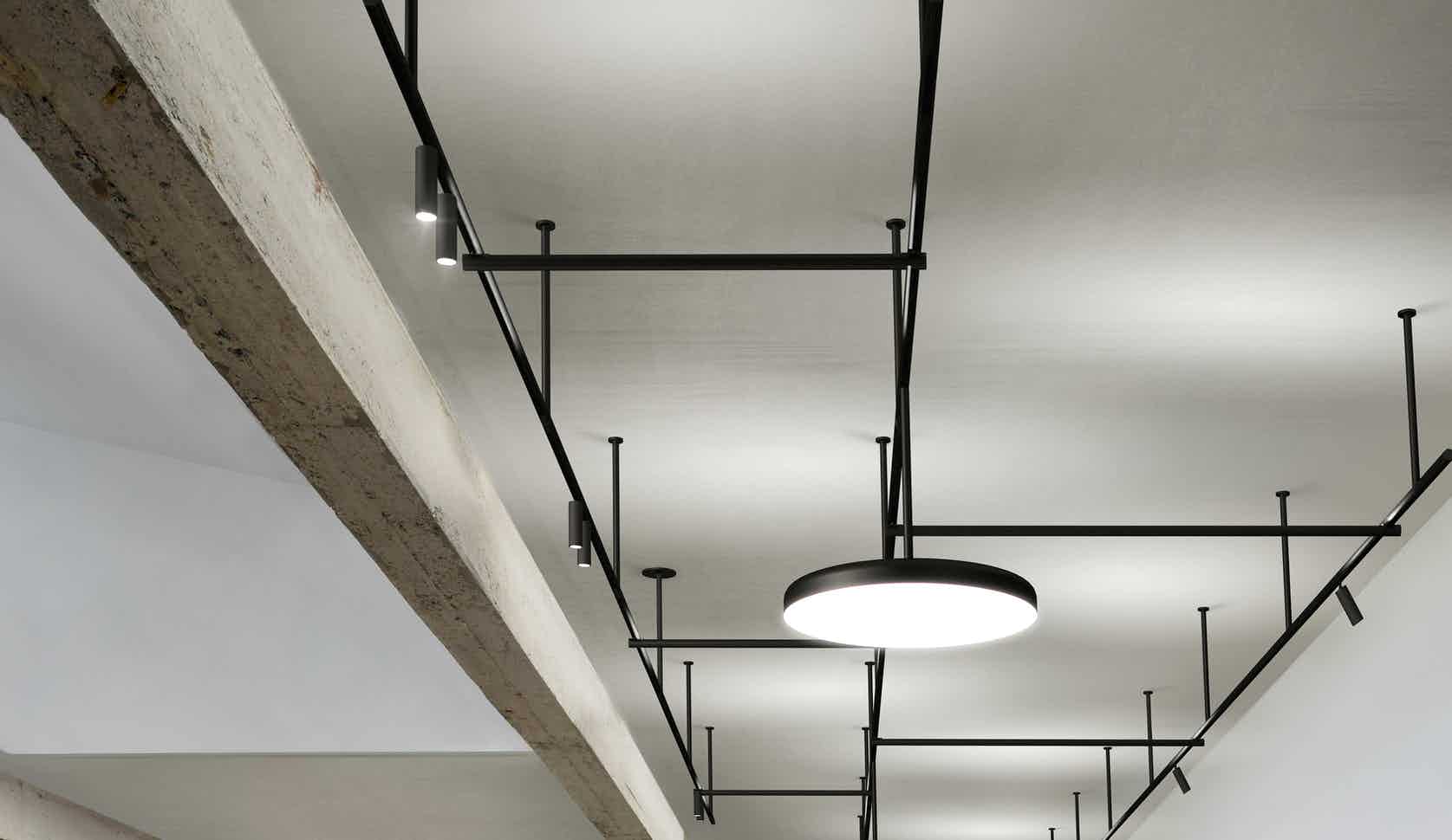 Tubular structure compatible with a wide range of light fixtures with magnetic fastening and mechanical safety locking. Regulation and control with universal protocols and using the FLOS SMART CONTROL? application.
