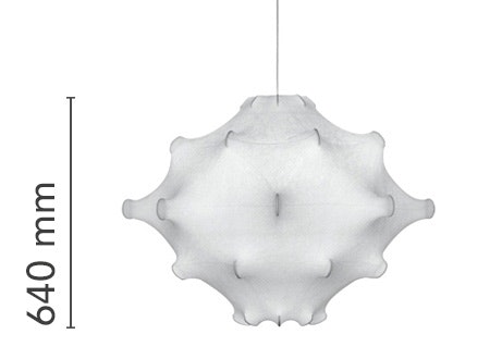 Suspension lamp providing diffused light. White powder coated internal steel structure sprayed with a unique cocoon resin to create the diffuser which is then protected by a transparent sprayed on finish.