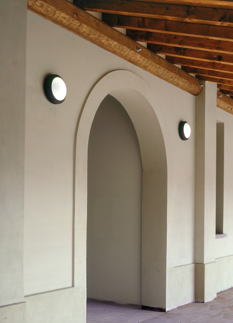 Cylindrical luminaire for wall or ceiling installation, available in three sizes.Sandblasted glass diffuser.