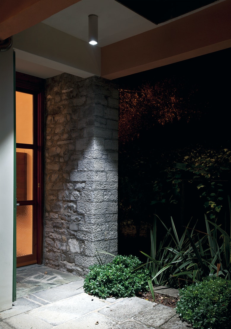 Range of cylindrical luminaires for ceiling installation, available in three sizes.Transparent glass or textured glass diffuser with silkscreen border, fixed through a robotic gluing system.