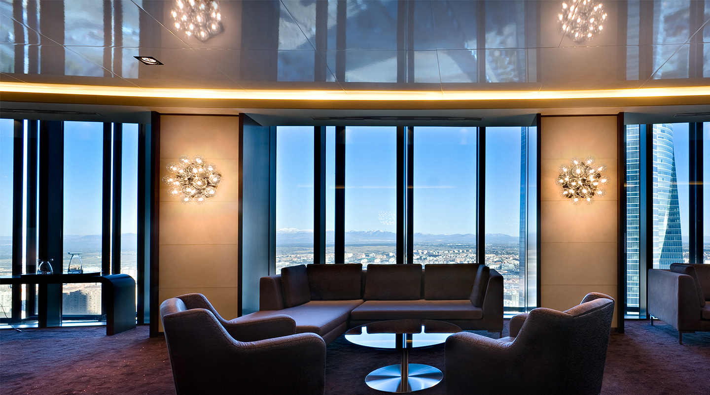 Wall/ceiling lamp providing direct and reflected light. Structure formed by 5 pressed polished aluminum triangles. 15 clear Globolux lamps housed around the structure. Steel wall/ceiling fitting and rose.