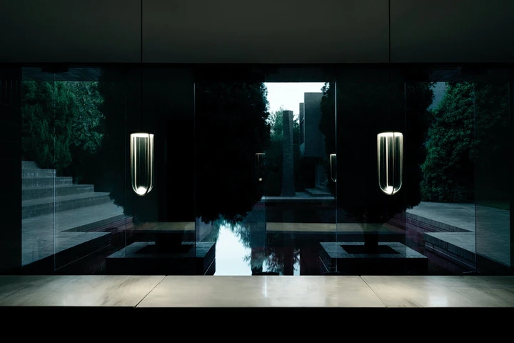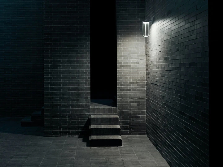 Outdoor suspension luminaire featuring an integrated LED source that guarantees uniform diffuse lighting.