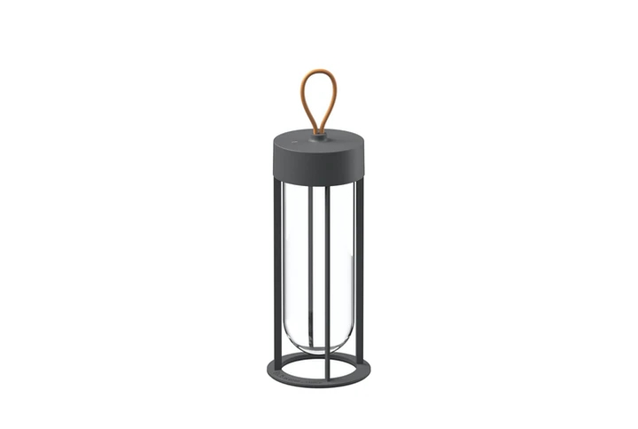 Outdoor wireless, rechargeable table lamp providing diffuse light via an integrated LED source that guarantees a uniform glow.