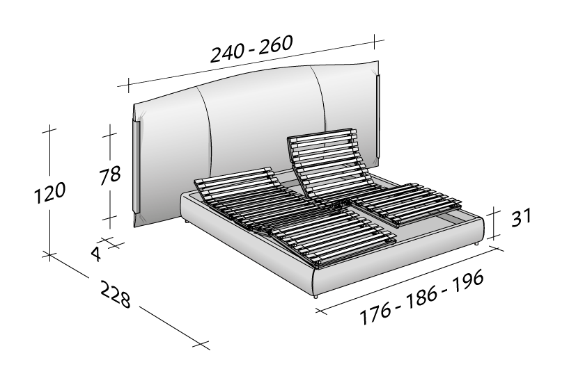 重要的Amal雙人床,由金屬型材的優(yōu)雅細(xì)節(jié)所高貴,在床頭板的兩側(cè),“捏”覆蓋物,增強(qiáng)整體的柔軟度,適合優(yōu)雅的環(huán)境。三種型材(閃亮的金色,亞光拋光,光澤的黑色鎳)設(shè)計(jì)用于促進(jìn)與各種類(lèi)型的涂層的組合。可提供 Leonardo 床架, 25厘米高的固定底座,帶有容器底座或帶電動(dòng)機(jī)芯的底座。底座和床頭板,完全可拆卸,可以用布料,皮革或生態(tài)皮革裝飾。