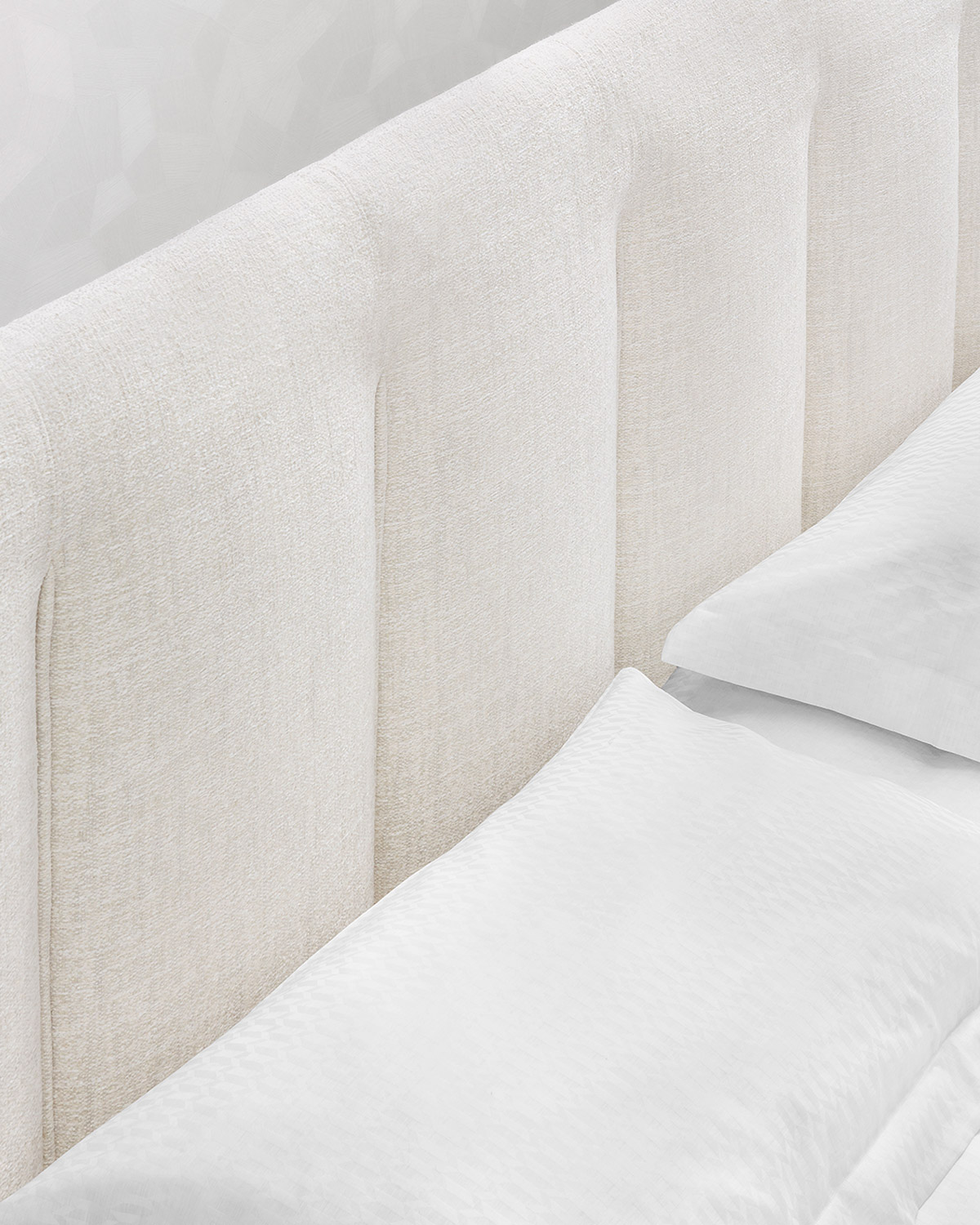 圓潤的床架和柔軟純凈面料,溫柔舒適。簡約流暢的線條、純凈的色系,沒有一點多余的裝飾,盡顯高貴優(yōu)雅。
