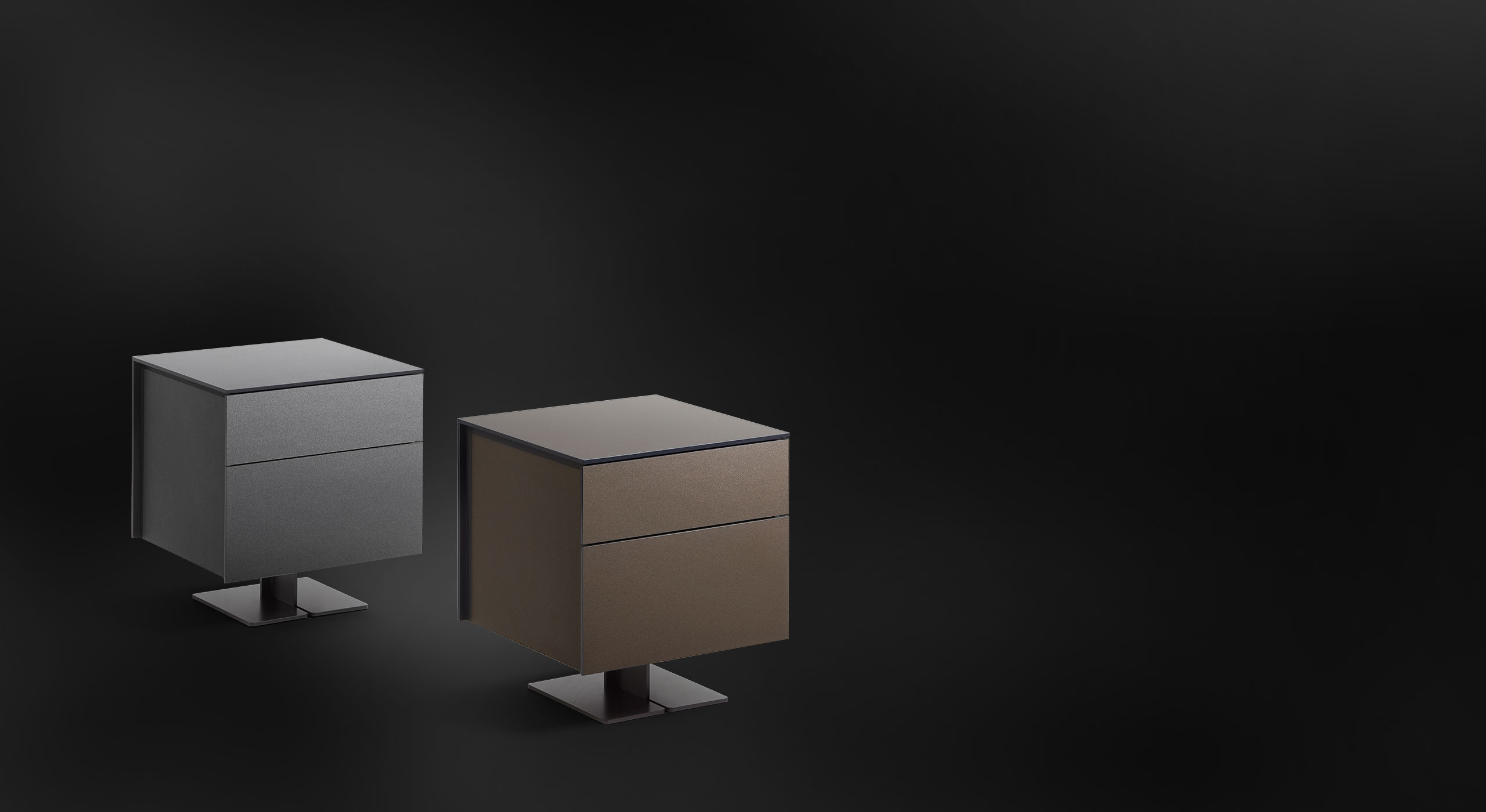 兩個抽屜的儲物層可以裝飾白色、砂礫色、青銅色、深灰色、亞麻色、鉛灰色的啞光漆面或者Style, Epoque, River, Private和Saffiano防刮飾面。