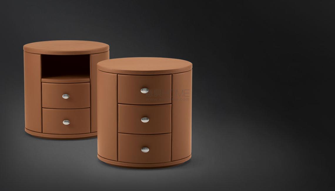 帶有兩個(gè)或三個(gè)抽拉式抽屜的圓形床頭柜,內(nèi)部加工為白樺木材,帶有減震的返回裝置。