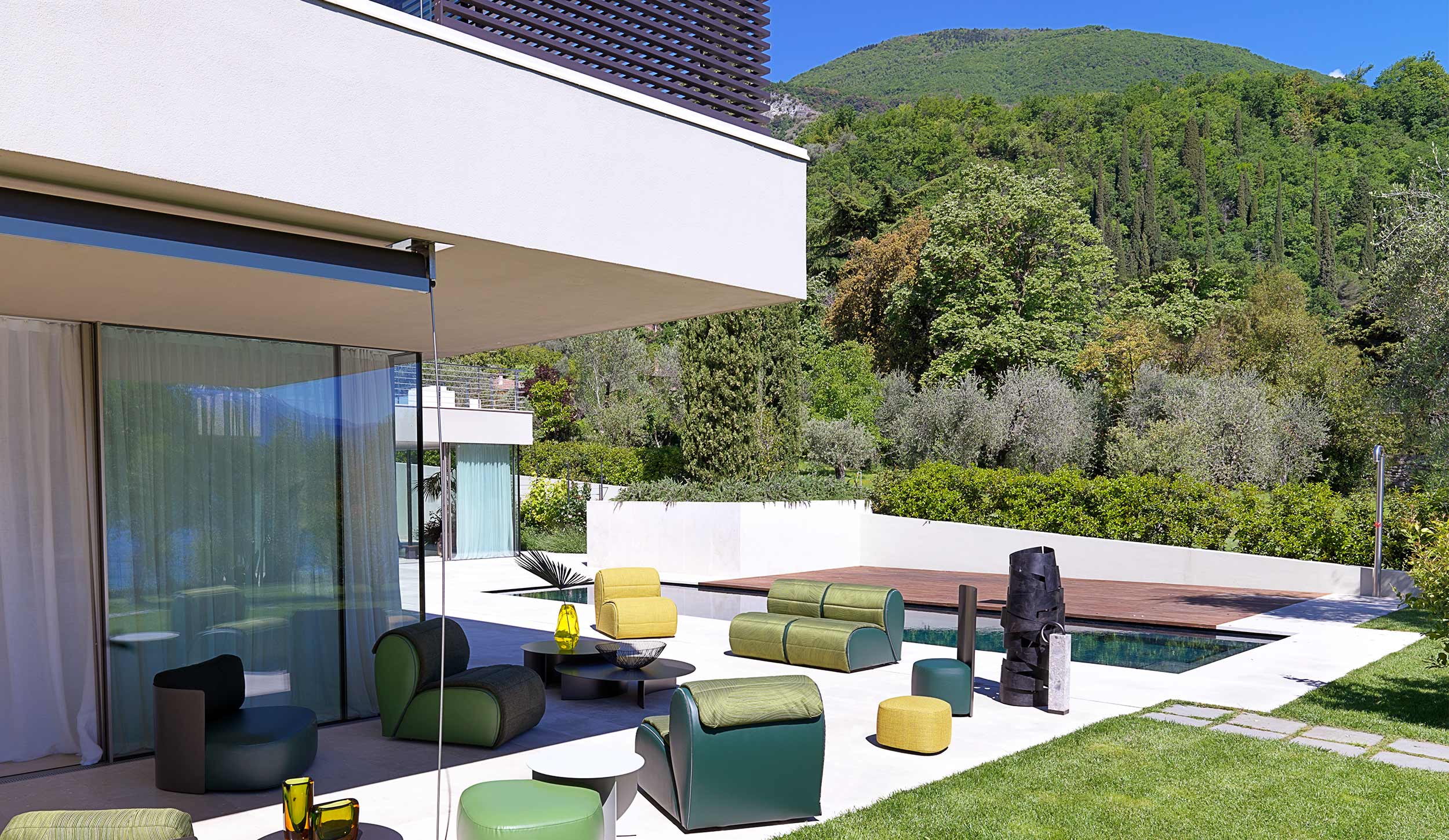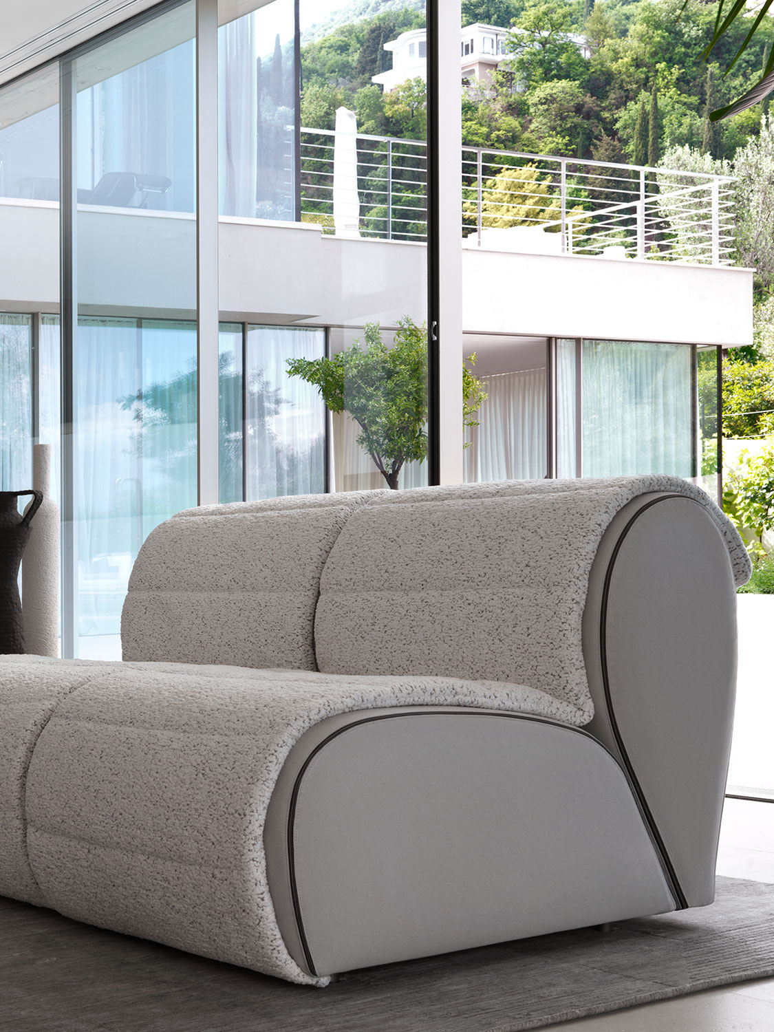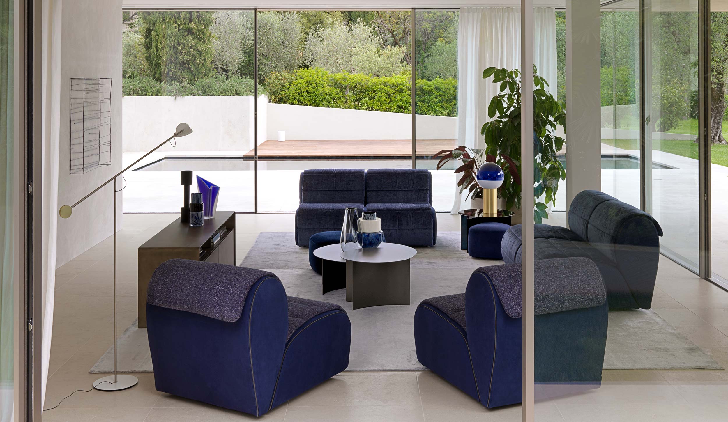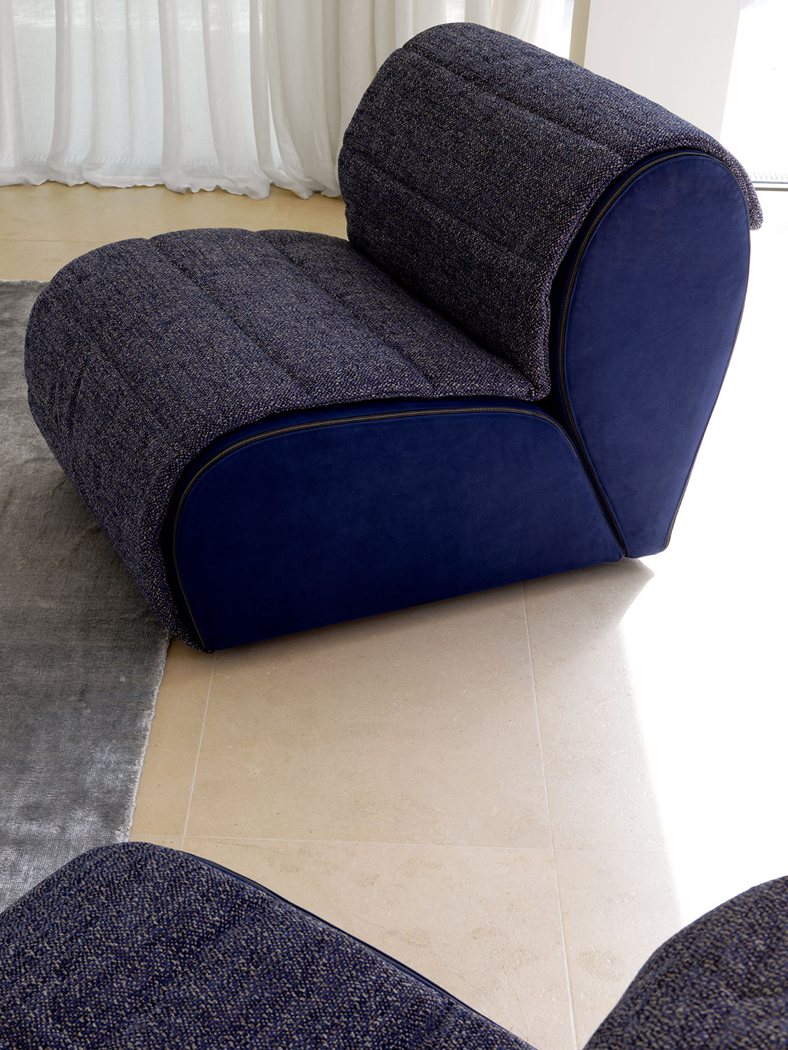 The delicate and fluttering life of petals inspired the shape and the overlaps of the upholstery. Flora adjusts and adapts, it changes its appearance without ever losing sight of its origins.