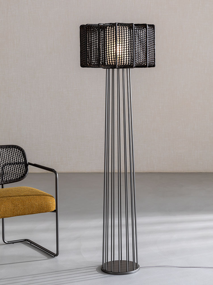 Arno燈具系列無論落地燈或臺燈,都是相當精致而富有現代氣息的產品,高貴氣質從細節和純熟的制造中流露出來。皮料是Arno燈具系列的主角,是這類產品中難得一見的元素。燈罩設計采用古老的皮革編織鞣制工藝,金屬支撐結構傳遞出流暢、簡約和支撐感,與燈罩形成鮮明對比。