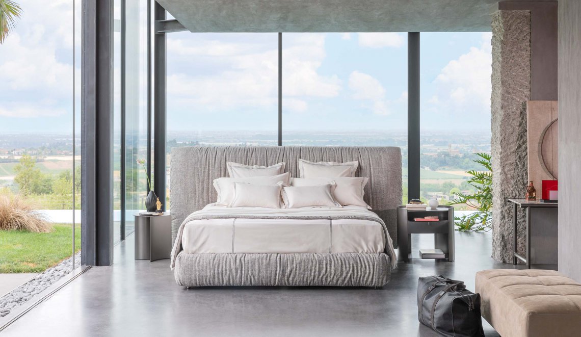 我嘗試用蘊含品牌DNA的語言設計一款滿足需求的床款,給人以舒適柔軟的感受,特別是床頭,其適合倚靠。由此Layla誕生了,它是Flou一款獨具特色的產品。床頭和沙發床的簡潔風格相得益彰。Flou所有經典床款的填充料和罩面都可以選擇,比如床頭部分,可以選用可拆卸布料或者皮料。兩側延展的高床頭雙人床,和沙發床一樣,可選擇可拆卸布料或者皮料作為填充料和罩面。沙發床的底座可選Leonardo底座、可調節橫條床架收納式底座、H25橫條床架底座,以及Motion 4活動床架底座。寬大床頭適合搭配兩個床頭柜,打造更為私密的休息空間。厚實松軟的填充料也是這款產品的一大亮點,提供舒適愜意的支撐,罩面也采用柔軟質地,延續這種放松的氛圍。