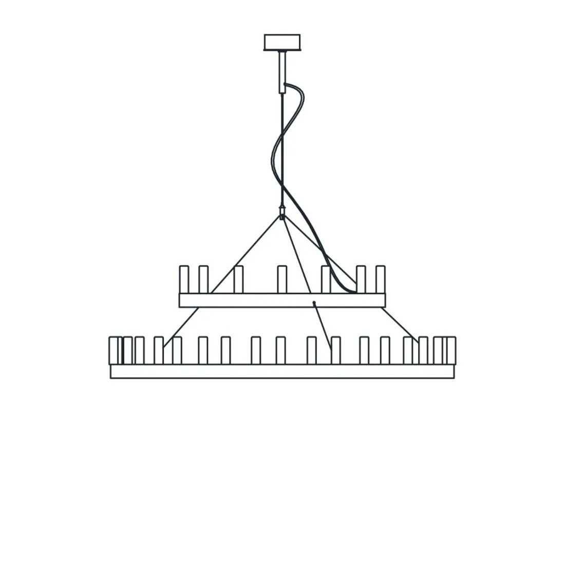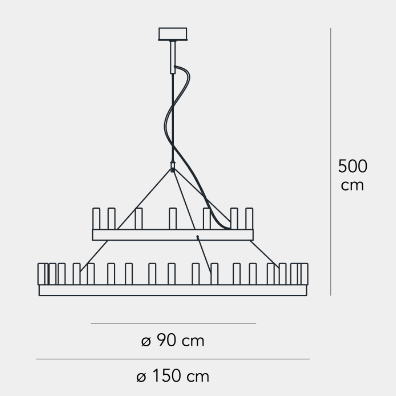 Si ispira ai lampadari della corte di re Artù lo scenografico lampadario disegnato da David Chipperfield. Disponibile in due colori, nella versione singola o doppia con due cerchi concentrici, illumina con classe ed eleganza qualsiasi ambiente, anche quello più moderno e minimale.Nuova finitura della struttura oro, assenza di tiges e cavi lunghi 5 m.