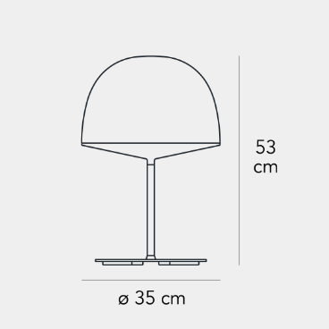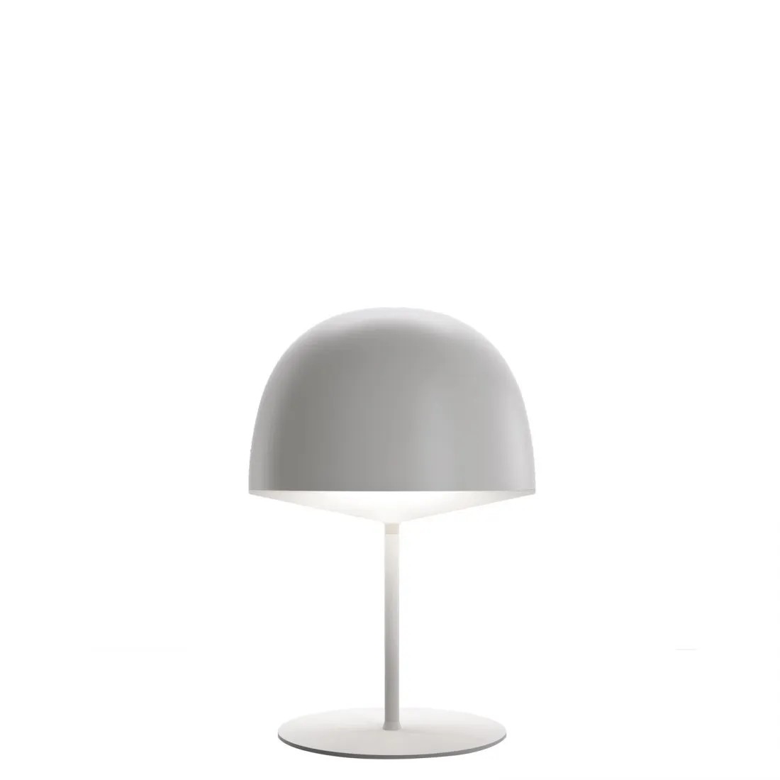 Riflette l’impronta nordica dello studio nella semplicità dell’estetica e della funzionalità. La calotta è di policarbonato opalino per favorire l’emissione diffusa; colorato per diffondere la luce verso il basso nella versione da tavolo e da terra oppure verso l’alto (nella versione sospesa).