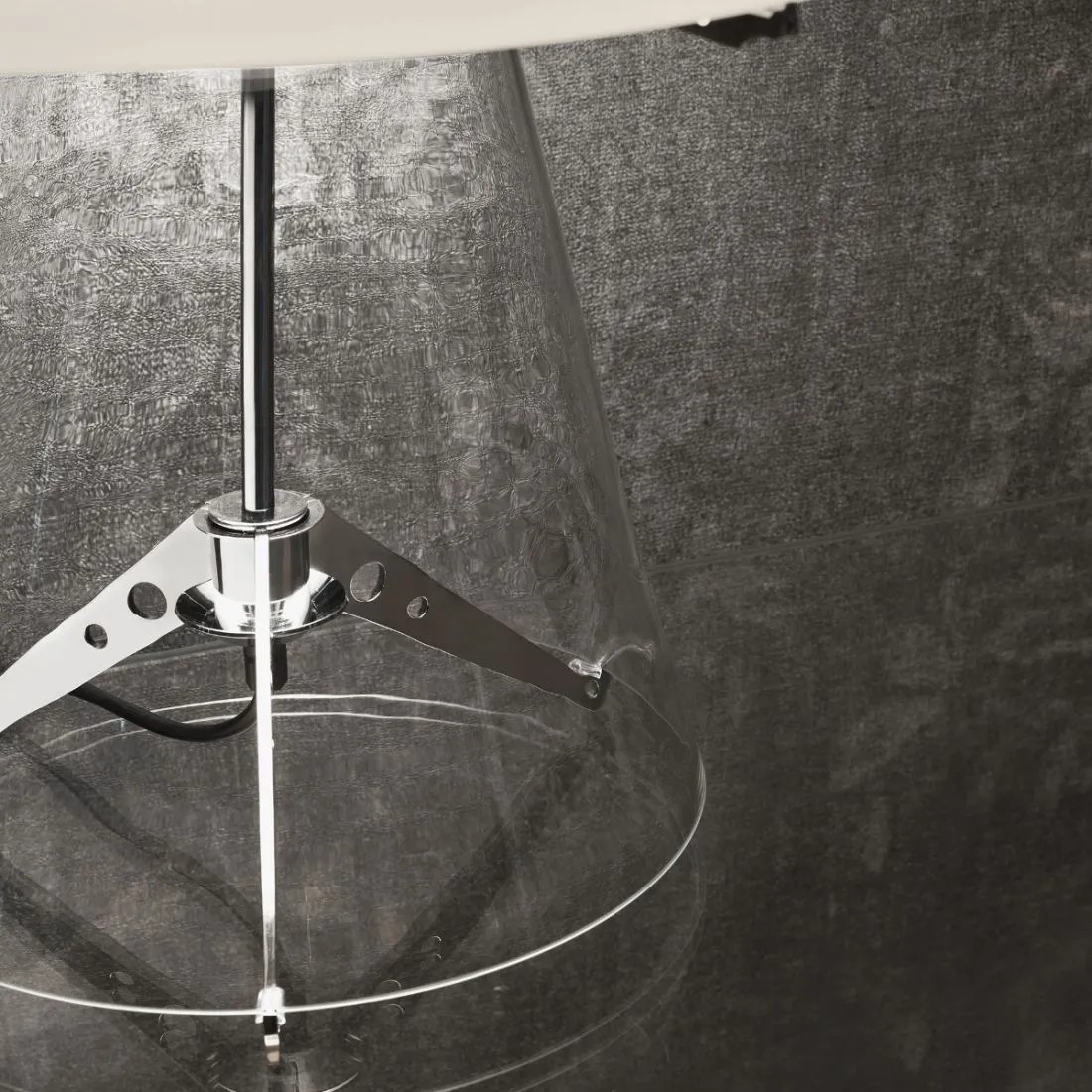 Metafora nasce nel pieno clima creativo dei primi anni 80, quando Gae Aulenti assume il ruolo di direttore artistico all’interno di FontanaArte e decide di riportare il vetro al centro dell’attività dell’azienda. Chiamato da Gae Aulenti, Umberto Riva disegna una lampada da tavolo preziosa, composta da un diffusore conico a strati di vetro opalino, sorretto da una base in vetro trasparente che cela la struttura in metallo, tutta a incastro. Un oggetto di natura fortemente decorativa, prodotto con tecniche produttive tradizionali come la soffiatura a bocca del vetro, tipiche del sapere fare artigianale, oggi riproposto ad un pubblico sempre attento all’originalità del design e alle sue espressioni timeless.