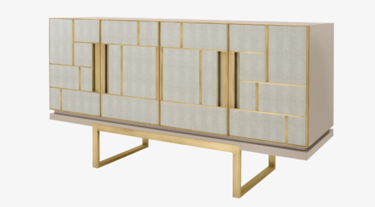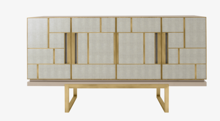 A real standout piece and a chic way to add a geometric sensibility to your space, the DIDOT sideboard’s two double doors feature brushed brass inlaid with luxurious panels of faux-animal skin.