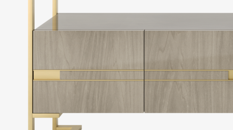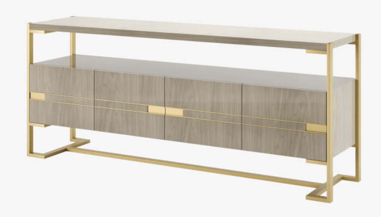 A distinguished combination of glossy wood veneer and brushed brass, the OTTAWA offers a mixture of open and closed storage, allowing you to conceal unsightly clutter from view while also showcasing favourite objets in a chic way.