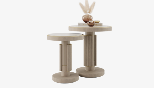 Named after the UNESCO World Heritage site, the OLYMPIA side table is reminiscent of the temple columns prominent in Ancient Greek architecture. A round pedestal design, it contrasts the warmth of wood with cool-to-the-touch stone.