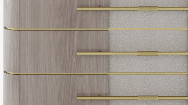 Crafted from wood veneer, the AGRA Chest of Drawers tempers its solid-looking silhouette with brushed-brass accents, elongated handles and panels of tactile leather. Ensuring a superior finish, it’s six drawers are internally lined with super-soft suede.