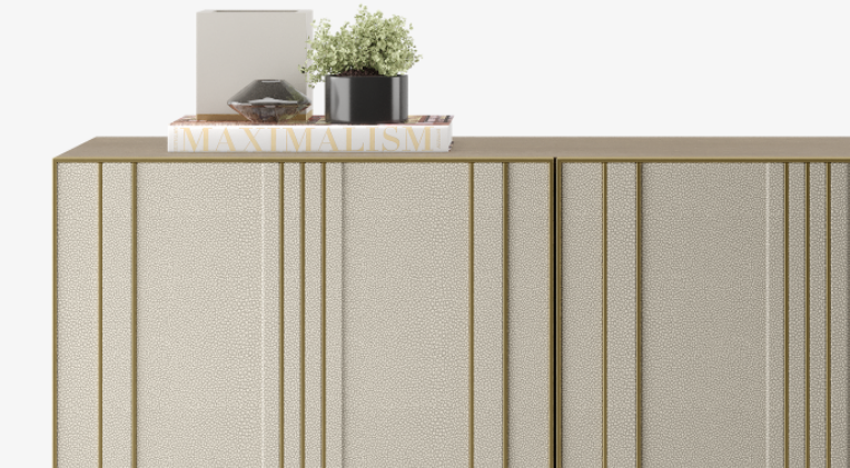 The ASCOT Cupboard channels the aesthetics of Brutalist architecture which is characterised by its use of rigid geometrics and blocky forms. Neat brass stripes placed at irregular intervals add an unexpected rhythm to the front of the wonderfully urbane Cupboard.