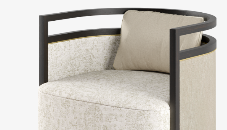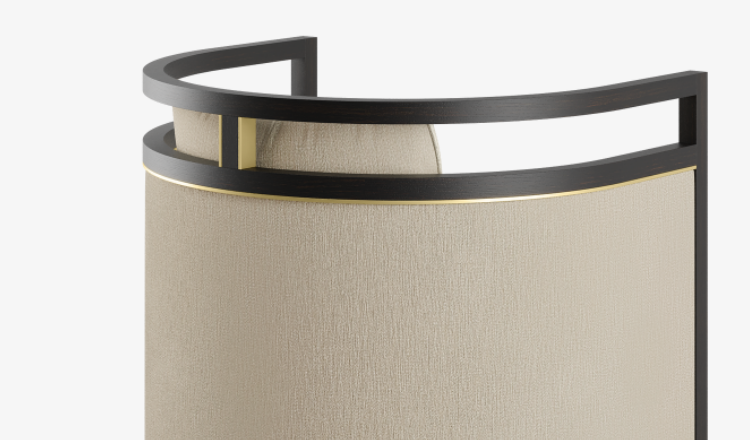 The full seat of the sophisticated MINSK is given a sense of levity thanks to the sculptural, wooden framework. From the rear, the armchair exudes an air of mystery as its screen-like back provides only a hint of the remainder of the design.