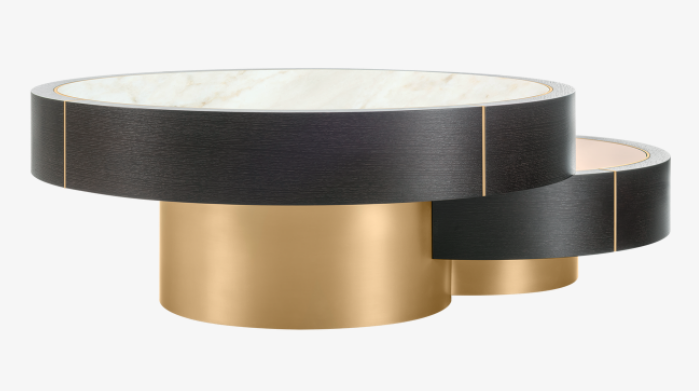 Devised to standout, the distinctive AARHUS Coffee Table is not for run-of-the-mill interiors. Made up of assorted circular shapes that dexterously interlock and overlap, this multifaceted piece possesses a refreshing tempo that’s further enhanced by a medley of luxurious materials.