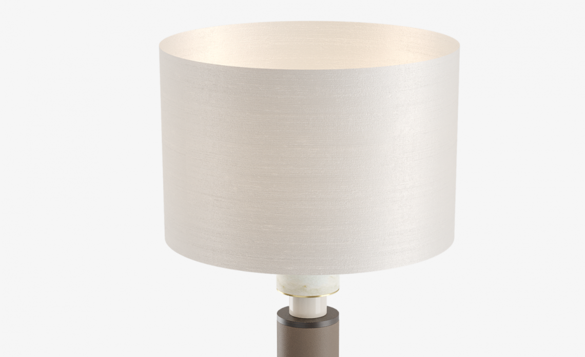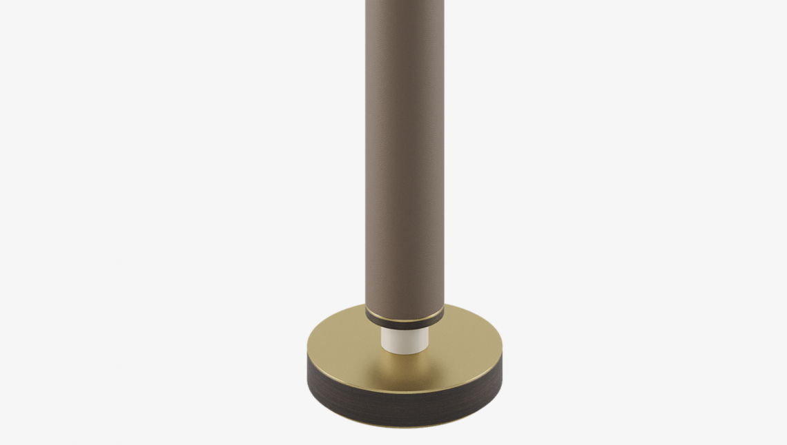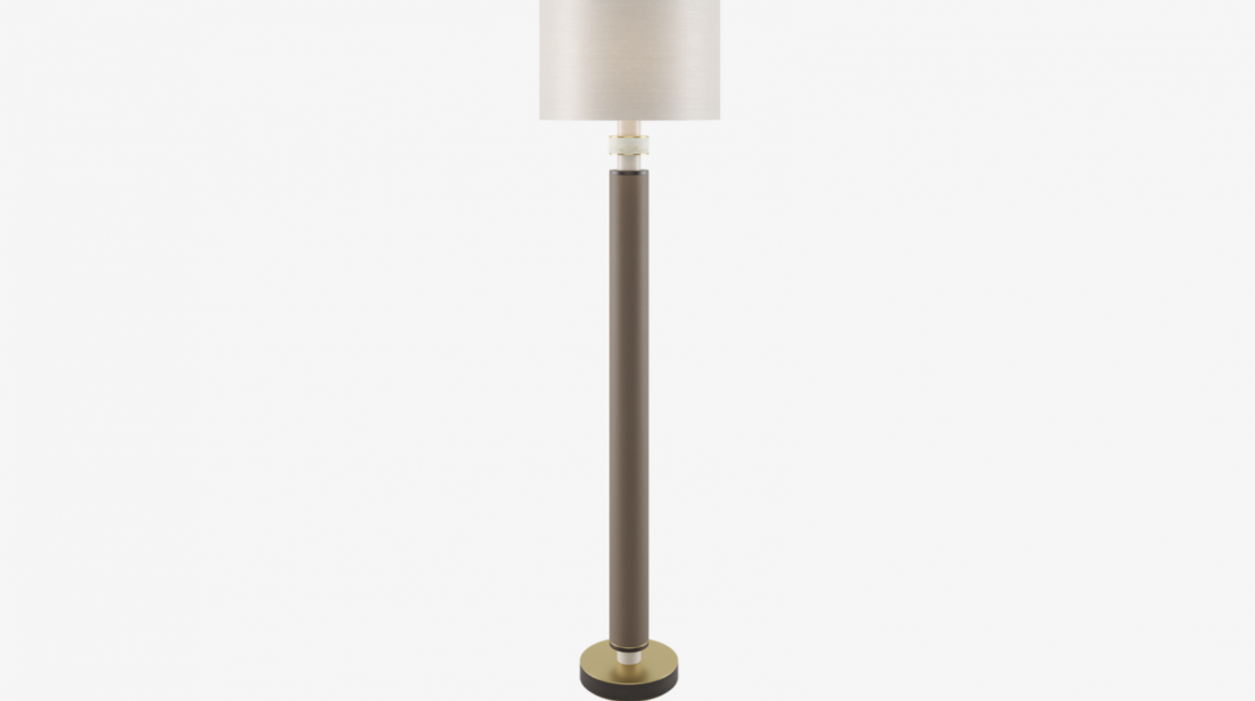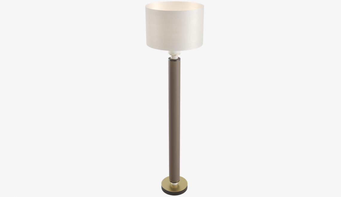 The NAPLES floor light plays with proportions and materials, combining a bijou base of brushed brass and solid wood with a generous stem finished in luxe leather.