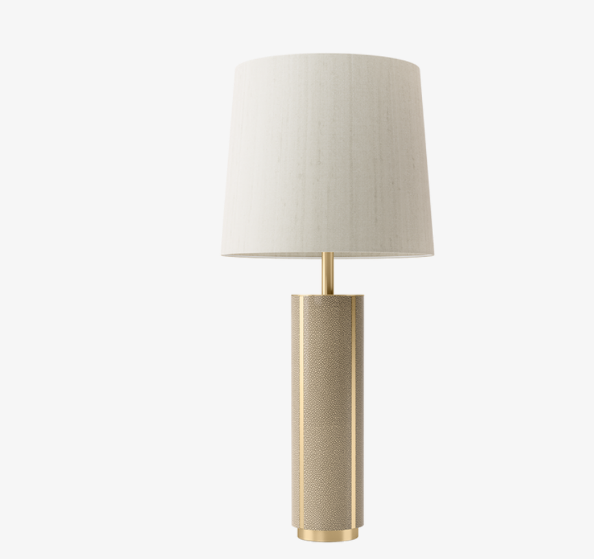 The desirable CLOS table lamp possesses an air of self-assurance thanks to its plentiful proportions and timeless good looks. A blend of brushed brass and textured leather