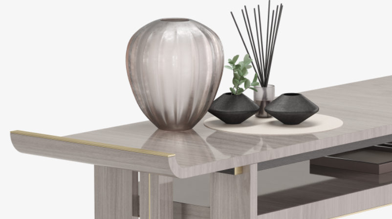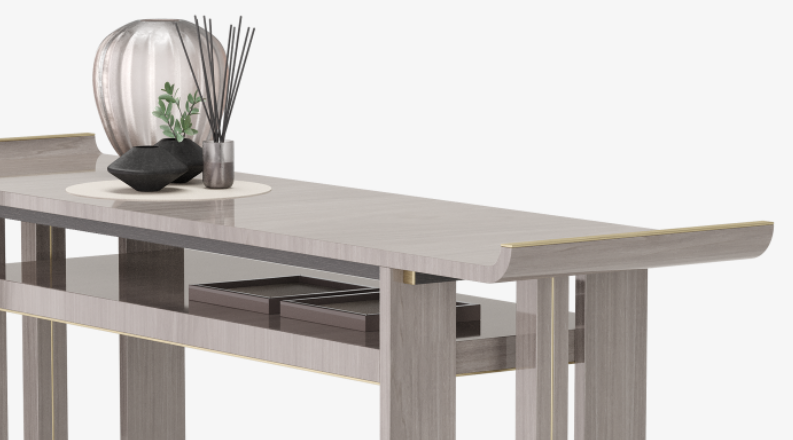 Paying homage to the iconic shape of Japan’s traditional torii gates, most commonly found at the entrance to Shinto shrines, the GINZA console features an upwardly curved top and an easily accessible open shelf.