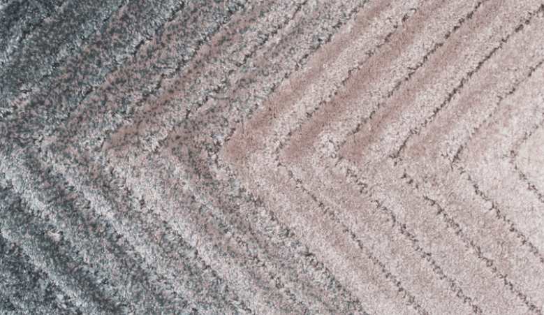The botanical silk WELLINGTON V rug features an eye-catching chevron pattern and an ombre wash of colour that move seamlessly from stormy grey to soft rose tones.