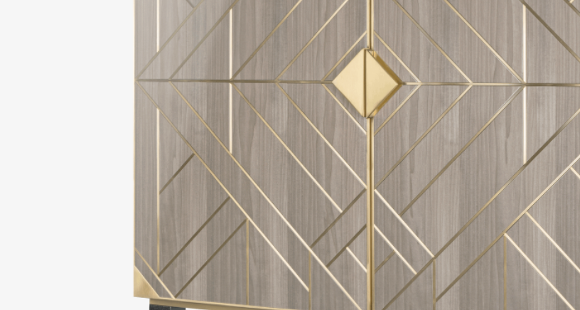The sublime SIRMIONE tall cabinet makes its mark thanks to an intricate diamond-inspired design that enhances its doors and carries through to its characteristic handles.