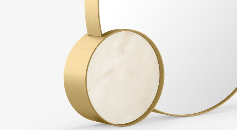 The ergonomic form of the exquisite AMALFI Table Mirror is given an idiosyncratic sensibility with the addition of a smaller overlapping circle inlaid with marble. A seamless brushed-brass trim delivers a flawless finish, bringing harmony to the whole.