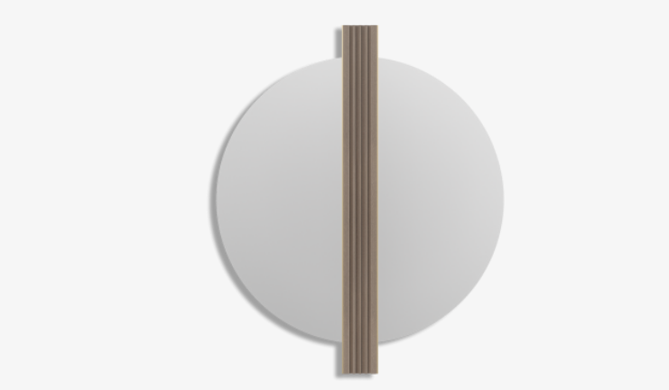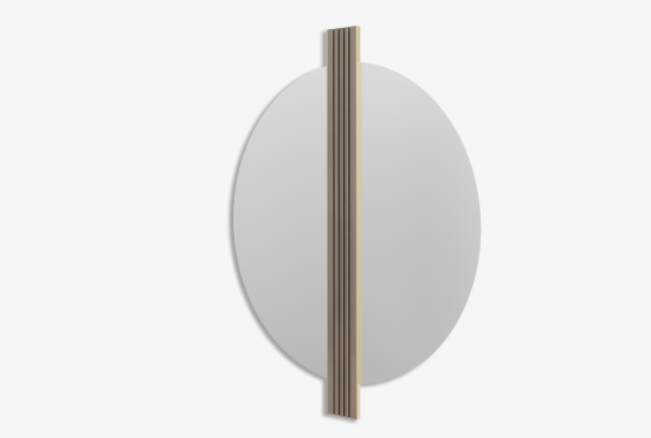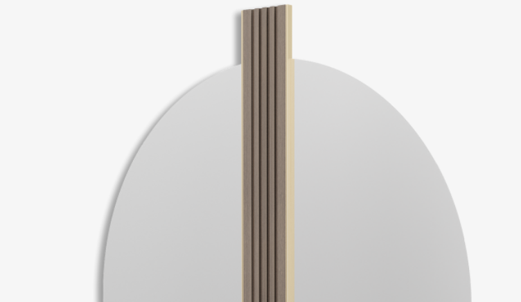 Not only will the CAPPADOCIA mirror maximise light and a sense of space in your home, it will add a decorative touch with its original design, which features a strip of fluted solid wood edged in brushed brass through the centre of a circle of glass.