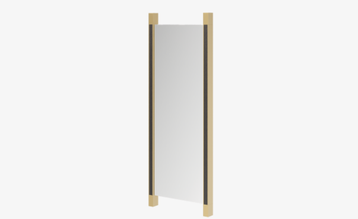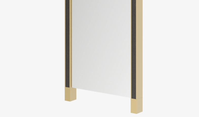 Simple yet striking, the GALWAY mirror makes a statement with its angular form. Brushed brass accents with wood veneer inlays add elegance to the design.