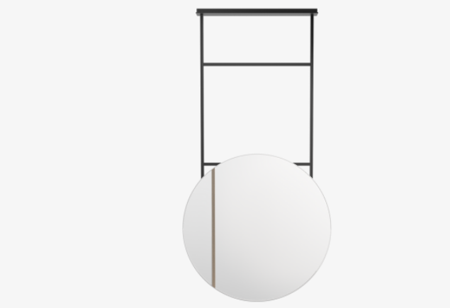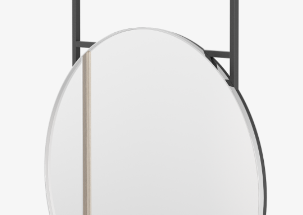 A lesson in geometry, the ultra modern KYIV II mirror combines structured angles and soft curves. The ceiling-mounted design means it can be hung above your vanity to create a sense of space and light.