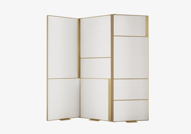 Create zones and privacy within a large or open-plan space with the attractive JARAMA screen. Crafted from brushed brass and nonsequential fabric panels, it's reminiscent of a Mondrian painting.