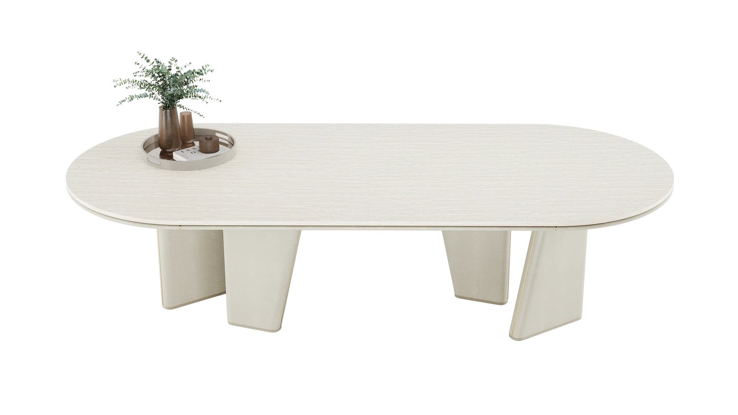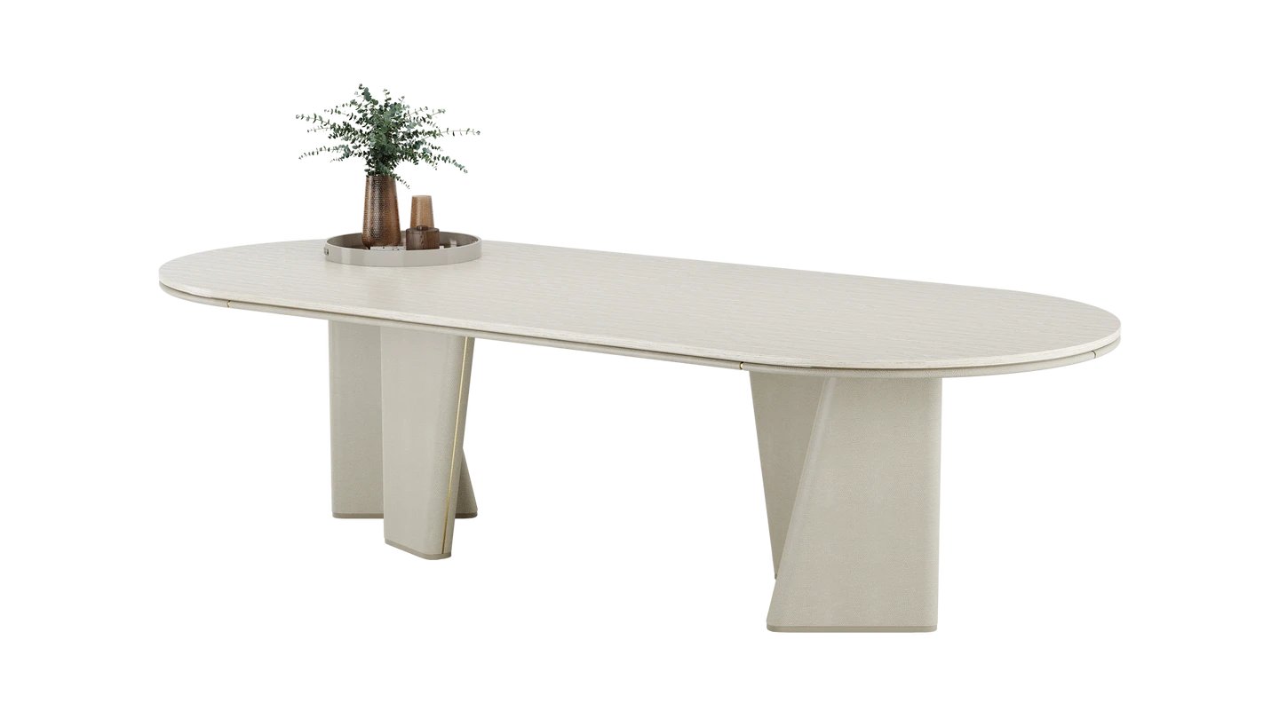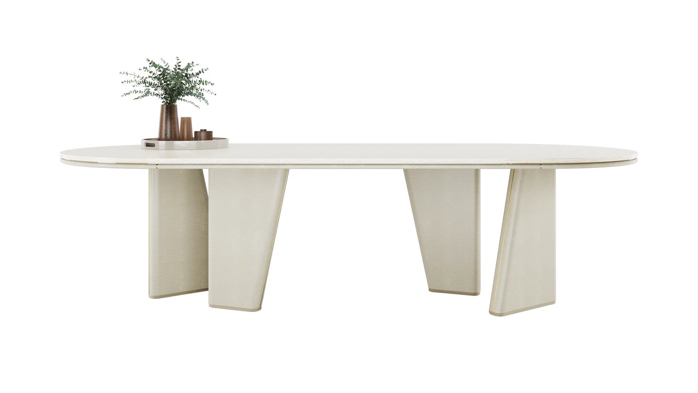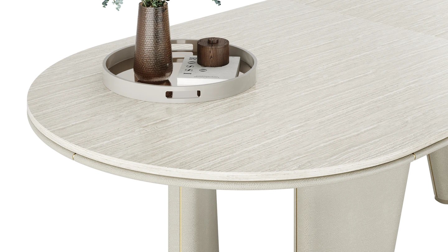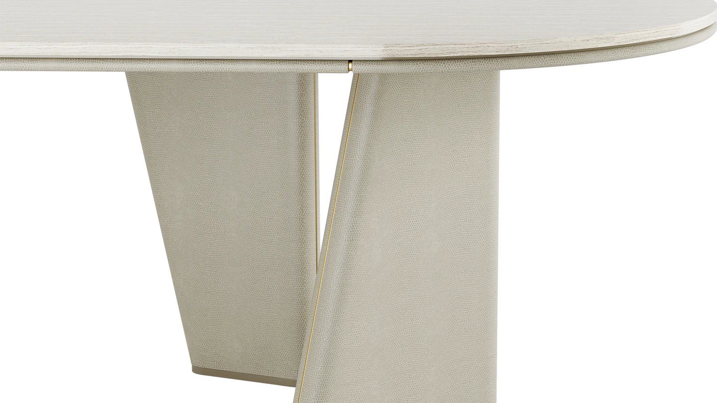 The TORTONA II Dining Table is a lesson in minimalism. Combining stone, wood and leather, the shape is uber simple yet stylish. Brushed brass details bring it to life.