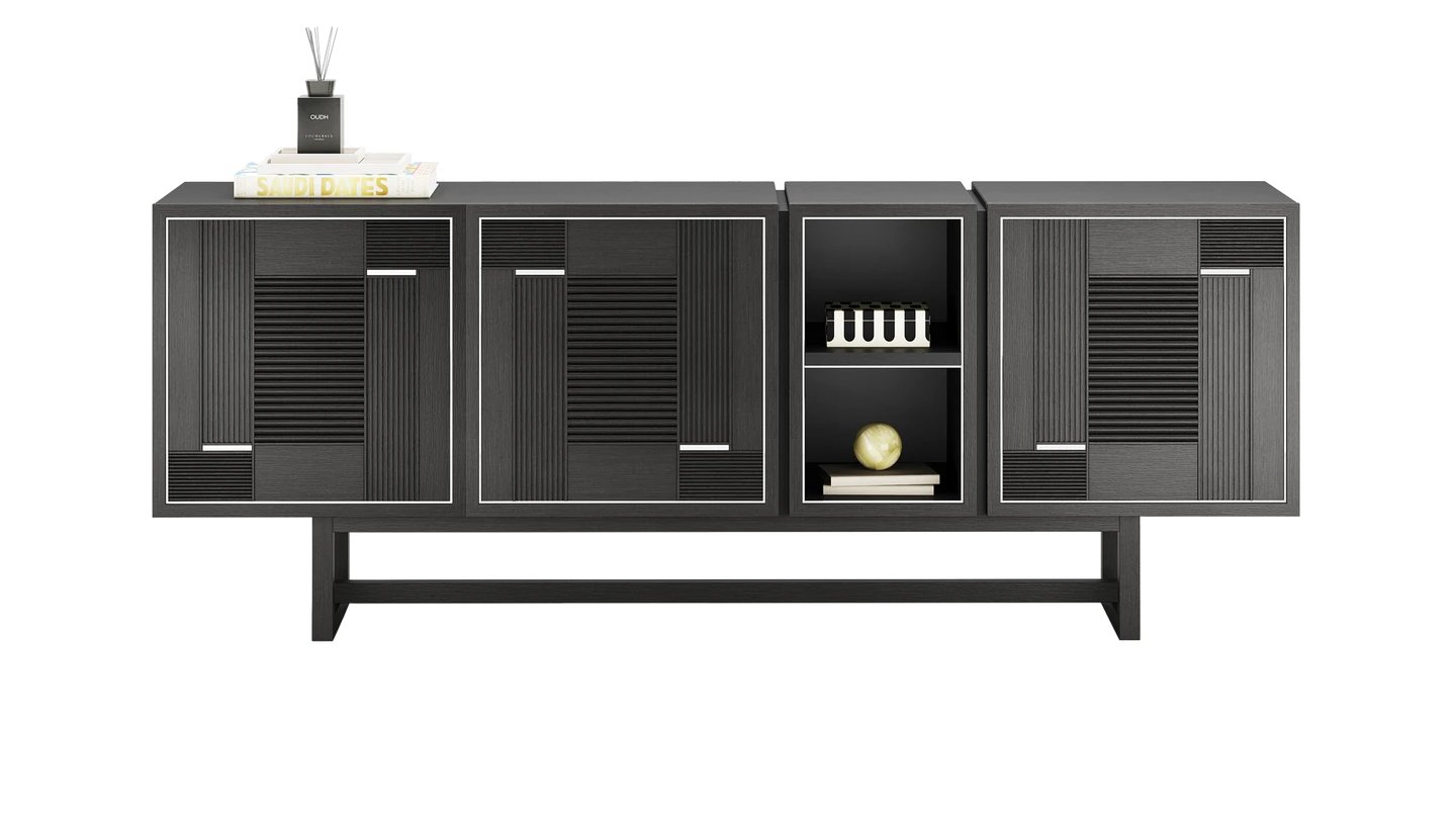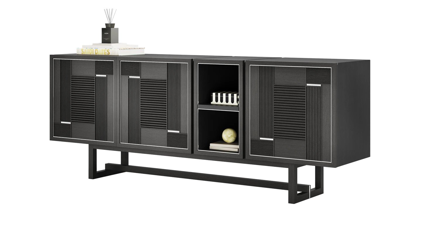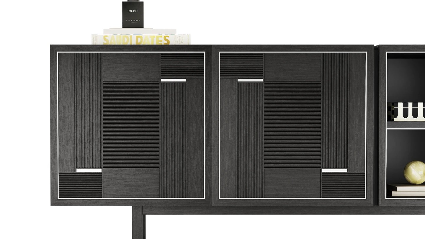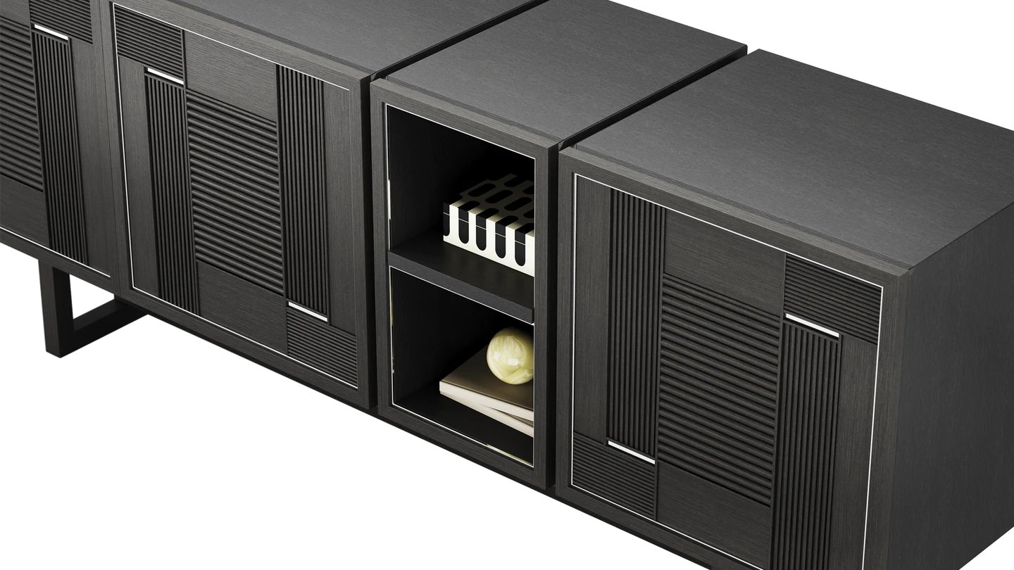 "Our TUSKET Sideboard add an industrial note to your space. It combines stainless steel and solid wood for a sophisticated finish. "
