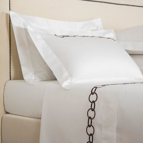 The Links Embroidery Sham is composed of smooth and lustrous long-staple cotton sateen and features a beautifully crafted chain embroidery on its front side.