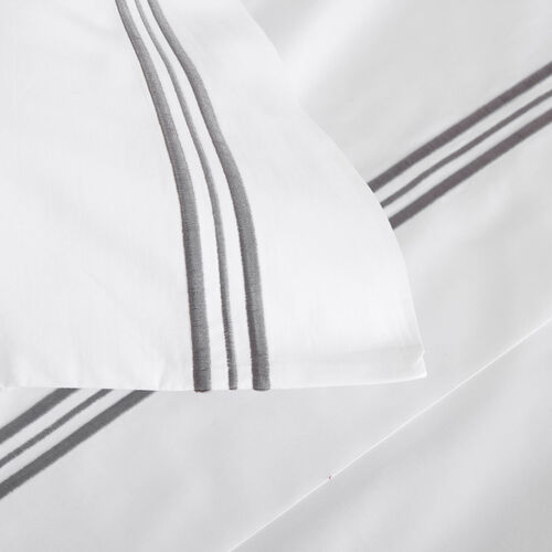 Soft and smooth with high shine, the Triplo Bourdon Pillowcase is crafted from pure cotton poplin and embellished with a three-line embroidery.