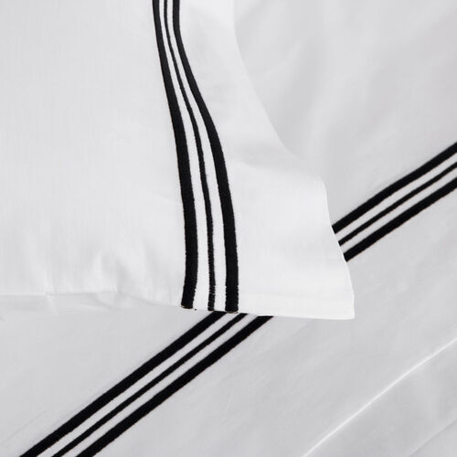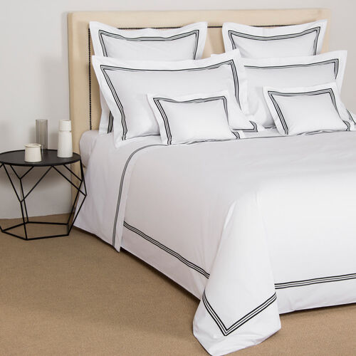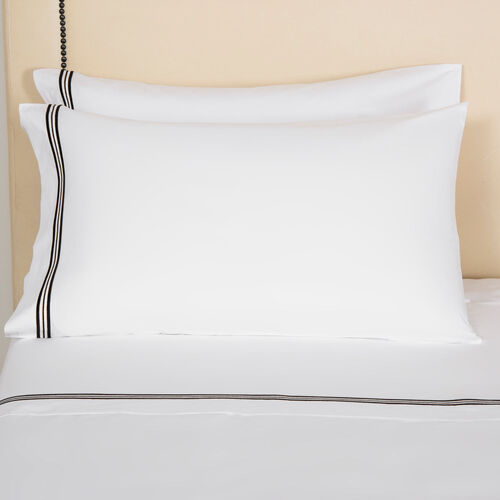 Soft and smooth with high shine, the Triplo Bourdon Pillowcase is crafted from pure cotton poplin and embellished with a three-line embroidery.